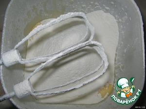 Крем: Белки взбиваем с сахаром в крепкую пену, добавляем какао.