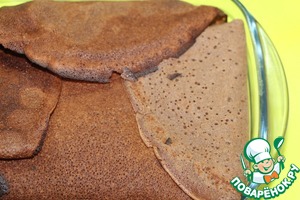 Выпечь блинчики. Из этого количества продуктов получится 6-8 блинчиков, исходя из диаметра сковороды.