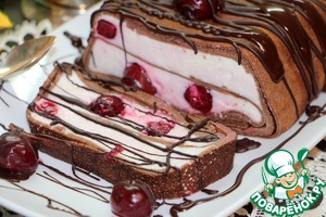 Рецепт «Вишнево-творожное суфле в шоколадных блинчиках»: