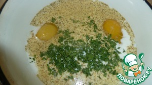 Начинка. В молоко добавляю яйца, специи. зелень-взбиваю.
