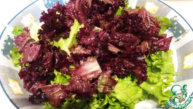 - Листья салата / Салат (1/2пучка зеленого лоло и 1/2 красного лоло)