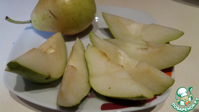 Грушу освободить от сердцевинки и нарезать крупными кусочками.