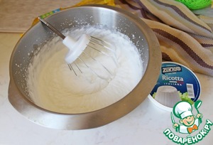 Для крема взбить сливки 33% и более с сахаром и рикоттой (можно заменить на творог).