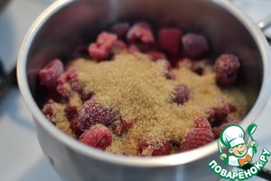 Замороженную малину засыпать сахаром и поставить на огонь.