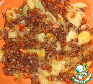 Мясной фарш протушить с тертой морковью. Посолить и поперчить.