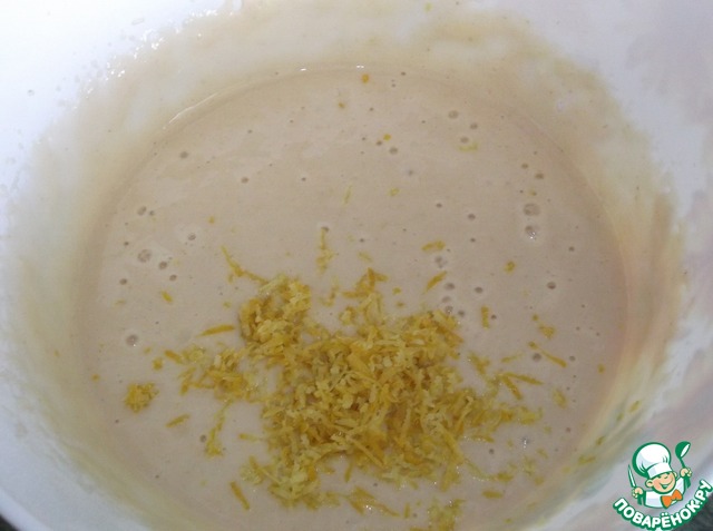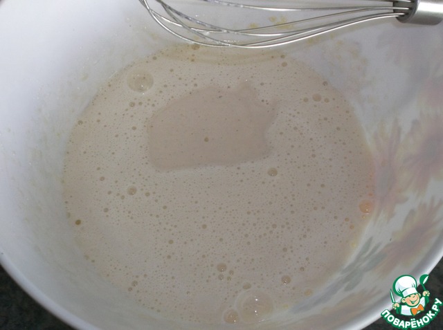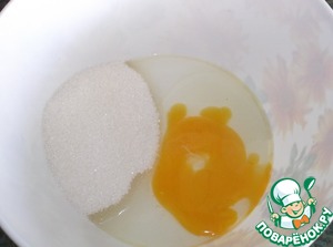 Во взбитое с сахаром яйцо добавить манку с ряженкой и масло. Хорошо перемешать.