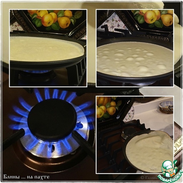Через некоторое время начнут появляться пузыри. Но тесто, видите, не прорывается. И даже, когда блин будет переворачиваться, разрывы не появятся.