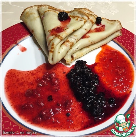 Или десертно…. Я люблю со смесью летних ягодок, намятых с малой толикой сахара. Там по центру – черника, слева – земляника, а справа – клубника. Ягоды все из леса и сада. Настоящие, ароматные. И на вкус – ну, просто, как летом!!!