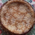 Сковороду разогреть и … налить на нее тесто. Очень аккуратно, добиваясь, чтобы тесто равномерно растеклось по всей поверхности сковороды.