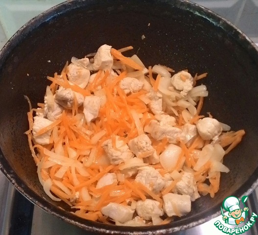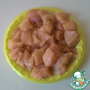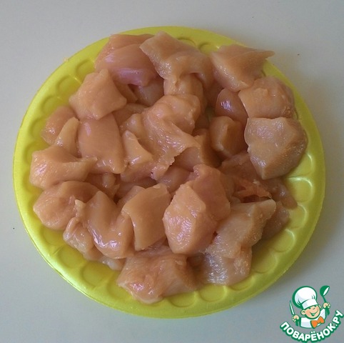 Порезать куриное филе кубиками (примерно 2х2 см)