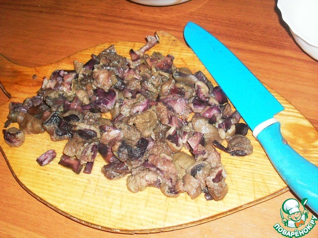 Печень зачистить от жил и пленок. Порезать не большими кусочками. -