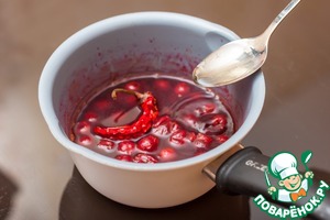 *Если вы захотите сделать вишню и соус более жгучим, то чили можете добавить еще на первом шаге.