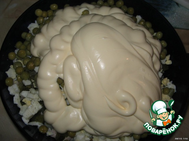 Солим, перчим, добавляем майонез.