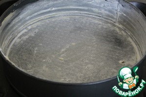 Разъемную форму смазать маслом, обсыпать мукой, излишки стряхнуть.