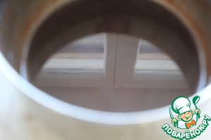 Довести до кипения, влить сливки, всыпать какао-порошок, хорошенько размешать, довести до кипения, убавить огонь и варить 25 минут, немного остудить.