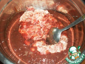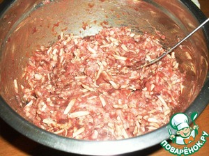 У меня фарш был готов. Печень пропустить через мясорубку к мясному фаршу.