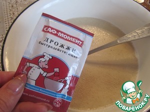 В теплом молоке растворить дрожжи Саф - момент и сахар.