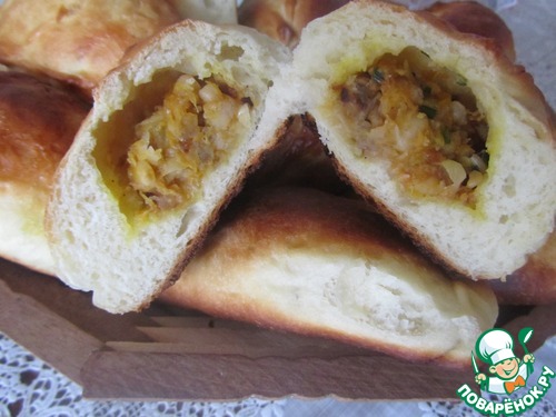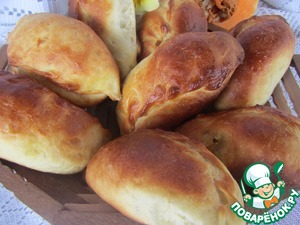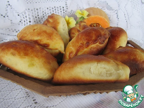 Рецепт этих пирожков я нашла в газете. Была очень интересная статья, о том как невестка не могла узнать на протяжении многих лет рецепт вкусных пирожков, которые печет её свекровь, и для того, чтобы рецепт раскрыть, ей пришлось пригласить иностранных гостей. В общем рецепт меня заинтриговал, и я решила испечь их для своей любимой свекровушки. Полтавские пирожки на столе! Тесто воздушное, а начинка на мой взгляд оригинальная) Кушай родная свекровь, пекла для тебя с любовью! Угощайтесь и вы!