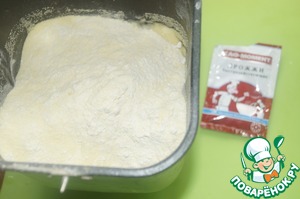 • Я готовила в тесто в хлебопечке. Для этого налила теплое молоко и воду в чашу, добавила сахар и дрожжи. Дала постоять минут 5.