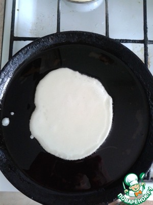 Начинаем печь блины: первый блин должен быть небольшим.