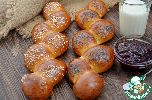 Перед выпечкой смазать взбитым яйцом и посыпать кунжутом или маком.