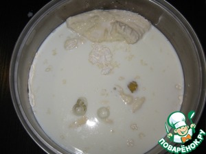 Сначала приготовим тесто для блинчиков (25 шт). Чтобы они хорошо переворачивались и не рвались, молоко нужно подогреть примерно до 40 градусов. В миску положить муку, яйца, соль, сахар, ванилин и примерно половину молока.