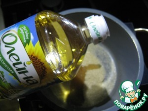 Для апельсиновой начинки в толстостенную кастрюлю высыпать сахар, налить масло ТМ "Олейна".