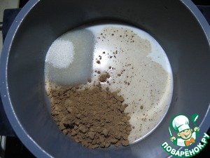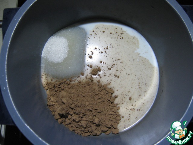 Для шоколадного соуса в кастрюльке смешать какао, сахар и молоко. Нагревая, мешать до растворения сахара и однородности массы. Кипятить не нужно, только довести до пузырей.