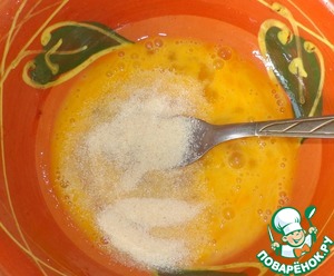 Яйцо разболтать вилкой. Добавить щепотку соли.