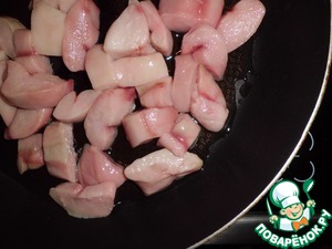 Крупно нарезаем петрушку, отправляем на сковороду.