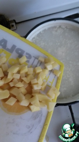 В кипящей подсоленой воде растворяем плавленный сыр.