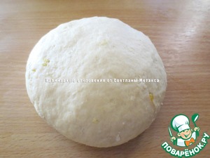 В муку добавляем растопленное сливочное масло и затем молочную смесь. Замешиваем однородное, не крутое тесто. Оставляем тесто на 30 минут в теплом месте.