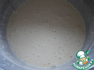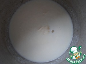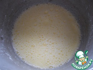 В горячий кефир быстренько взбиваем яйцо, чтобы не сварилось.