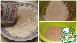 • Муку просеиваем, высыпаем дрожжи "Саф-момент". Перемешиваем. Добавляем к йогуртово-молочной смеси. Замешиваем тесто.