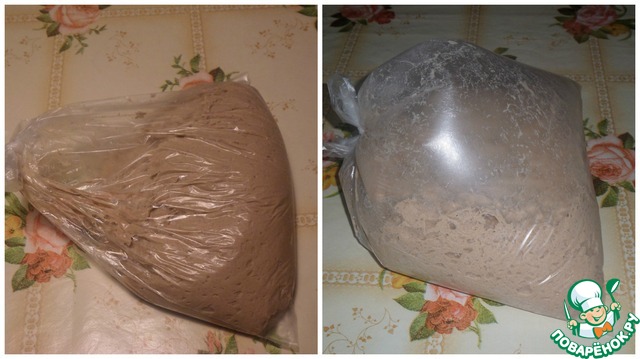 • Приготовленное тесто кладем в полиэтиленовый мешок. Убираем в холодильник на 6-8 часов. У меня тесто пролежало 6 часов.