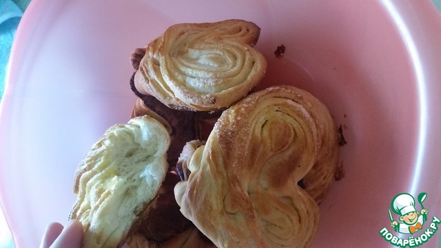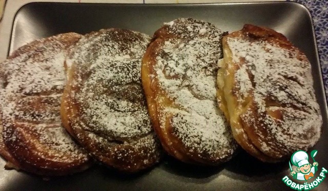 Делала с сахаром и корицей, съели за один вечер (семья у меня большая), теперь хочу попробовать с орехами. Увеличиваются, примерно вдвое, т.ч. это следует учитывать при выкладывании на противень, у меня на одном немного слиплись.