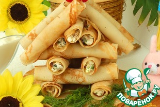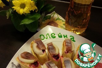 Для приготовления этой закуски можно брать любые не сладкие блины.