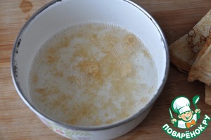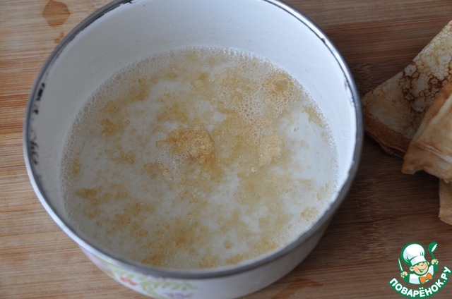 Для красоты сервировки я взяла блинчики диаметром 12 см (обрезала), поэтому все ингредиенты (указанные выше) уменьшила по количеству в 3 раза.