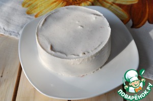 Достаём застывший чизкейк, освобождаем от формы (я просто прошлась снаружи феном).
