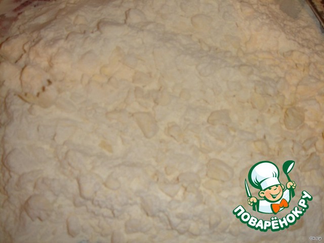 Замесить тесто с добавлением маргариново-мучной смеси, гашеной соды и оставшихся 2 стаканов муки.