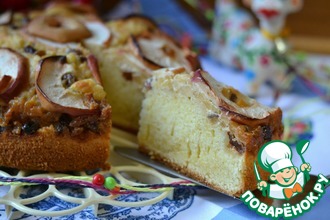 Готовый пирог должен немного остыть, затем его нужно порезать на порционные куски. Можно присыпать сахарной пудрой, но он и так очень сладкий.