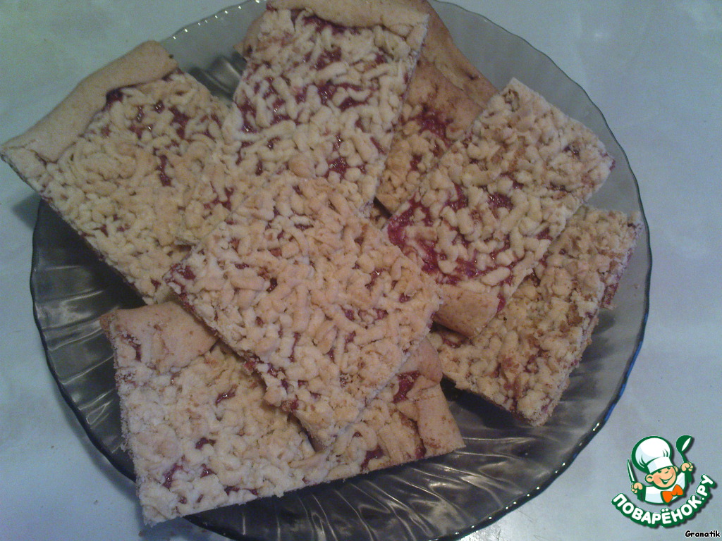 Очень простой и очень вкусный тертый пирог из песочного теста. Можно готовить практически с любой сладкой начинкой. Это рецепт из кулинарной книги моей мамы.