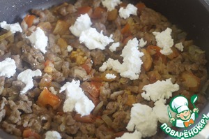 • Добавить творог и перемешать.