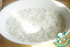 Добавить рубленный укроп, посолить, поперчить и перемешать.