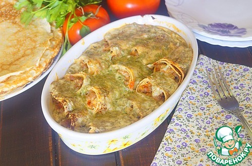 Рецепт «Блинная запеканка под творожной заливкой»: