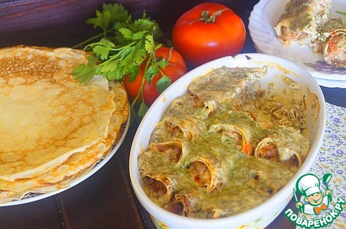 Выпекать блинчики в разогретой до 180 гр духовке около 20 минут.