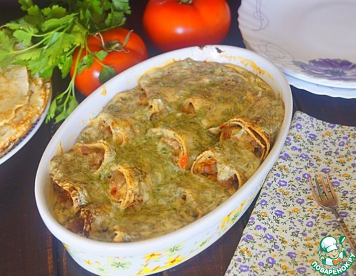 Предлагаю вам попробовать очень вкусно сытное блюдо из блинов, которое с легкостью заменит горячее на ужин. Творожная заливка отлично подчеркивает вкус блинчиков с фаршем, придает им отличный вкус и аромат.