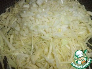 • Капусту шинкуем и отправляем на сковороду с 1 ст. л сливочного и 1 ст. л. растительного масла.