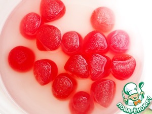В кастрюльку налить 200 мл. воды, довести до кипения и добавить мармелад.