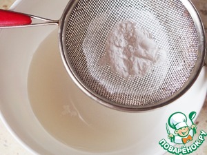 В 100 мл. холодной воды просеять крахмал, перемешать.